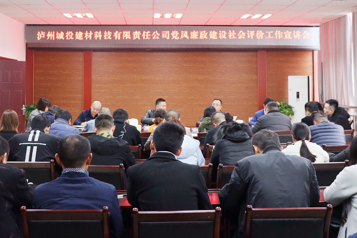 11月26日,瀘州城投集團建材公司組織召開了黨風廉政建設社會評價工作宣講會。會議由公司副總經理曾同海主持,公司全體員工參會。