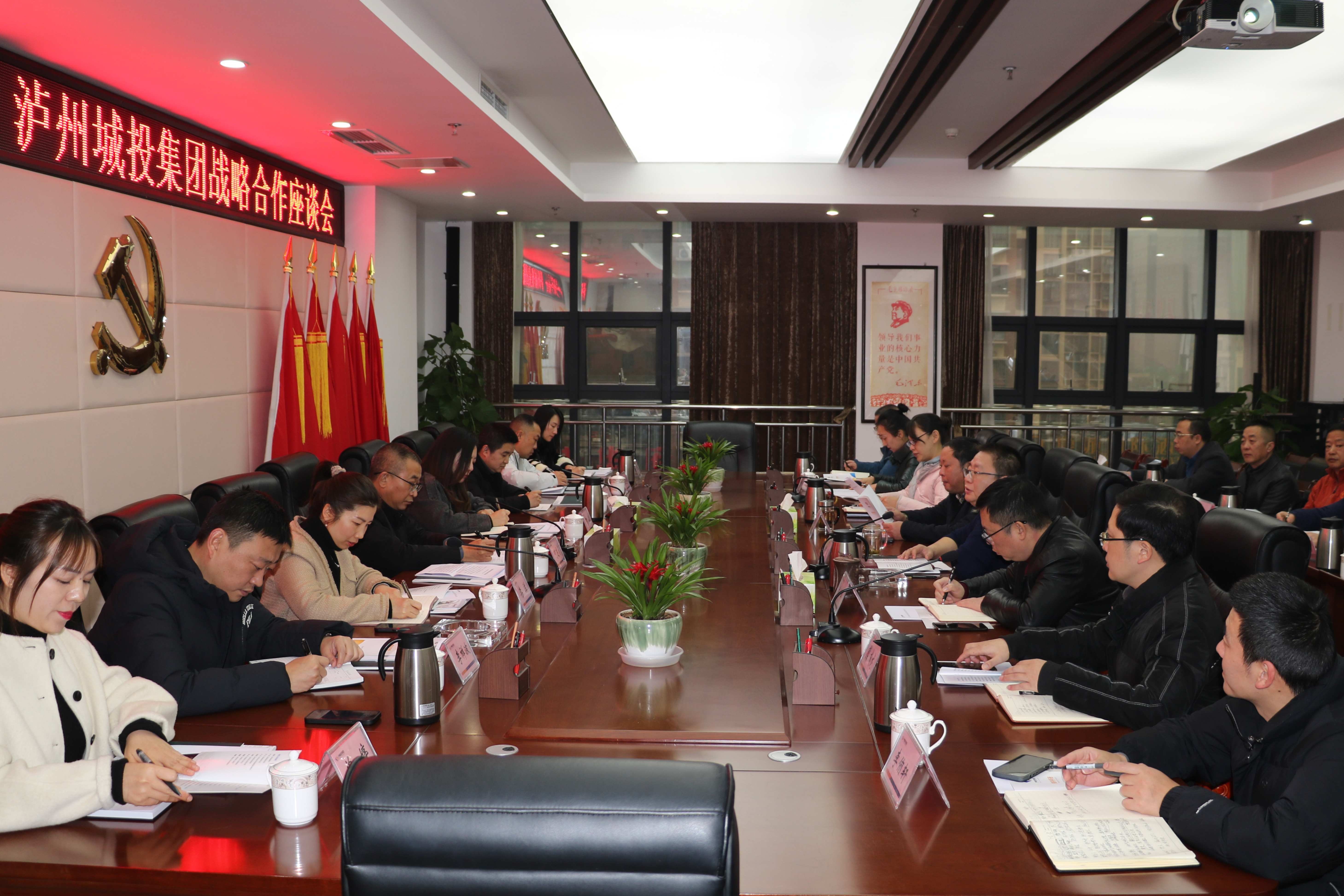 12月28日,瀘州經緯集團董事長何述清一行到瀘州城投集團開展戰(zhàn)略合作交流座談,瀘州城投集團黨委書記、董事長陳亮,黨委副書記、紀委書記、工會主席鄔克平,副總經理黃修華、財務總監(jiān)吳良鴿參加座談交流。