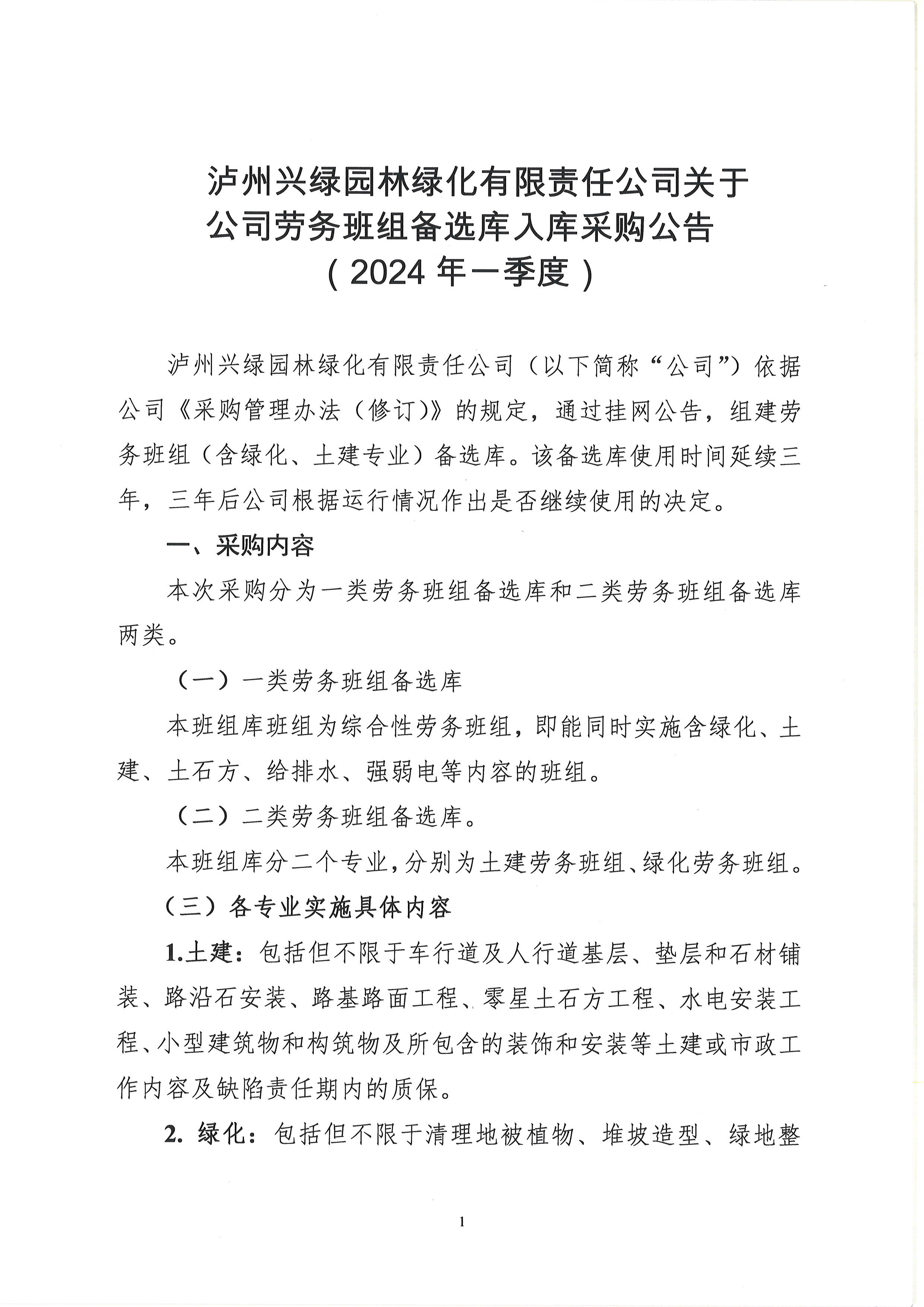 勞務班組備選庫入庫采購公告(2024年一季度)